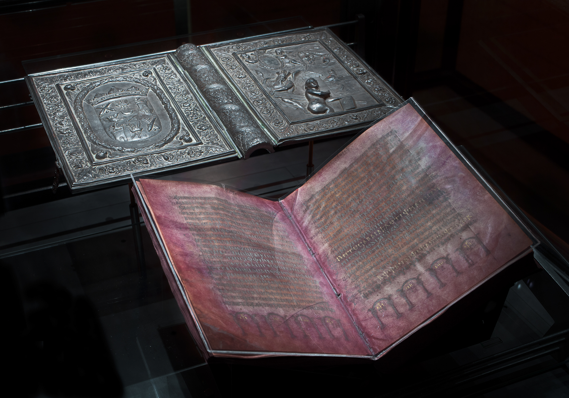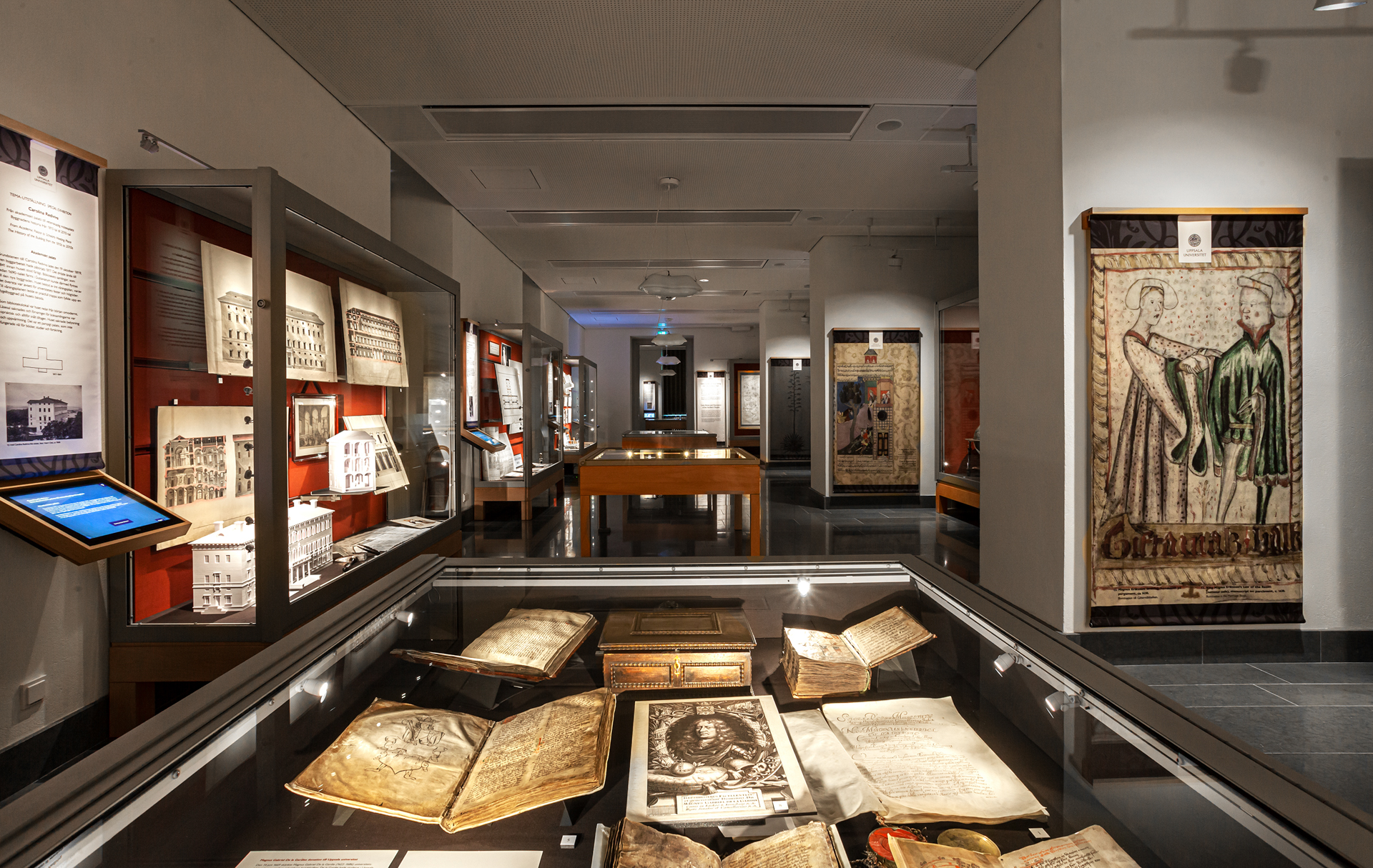 The exhibition contains the famous Codex argenteus, as well as the earliest reasonably accurate map of the Nordic countries, Carta Marina printed in 1539.